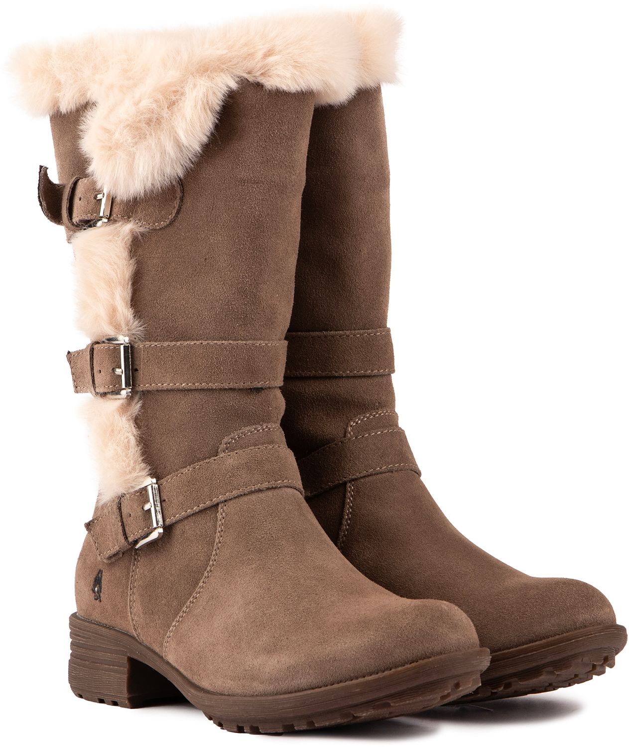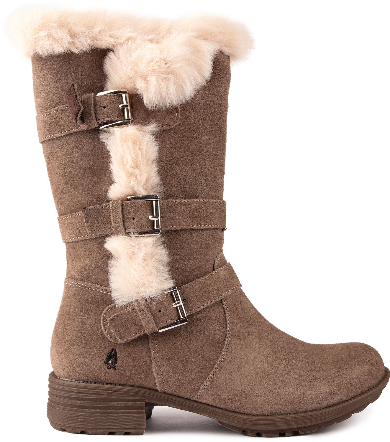 The Saluki mid-high boot from Hush Puppies features an adjustable, buckled strap for extra calf fitting and a hidden inside zip for easy on/off. Its flexible and hardwearing outsole, triple metal buckles, overspilling faux fur lining and premium suede upper make an excellent, fabulous boot with eskimo inspired detailing for the colder seasons.
